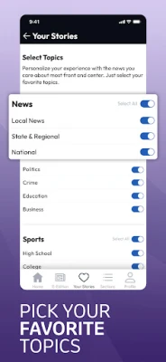 * Your Stories – personalize your experience by selecting the local news topics that matter most to you