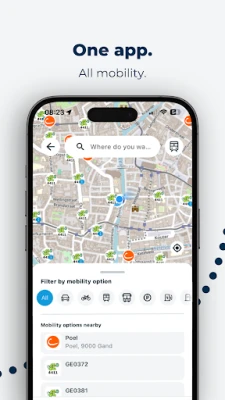 With your one-stop mobility shop, advancing for and saving paper tickets or receipts is history. Instead, you buy digital tickets for public transport (SNCB, De Lijn, STIB, TEC), shared transport (Blue-bike, Cambio, Velo ...), parking (4411, Q-park ...), refuelling (Q8) and charging.